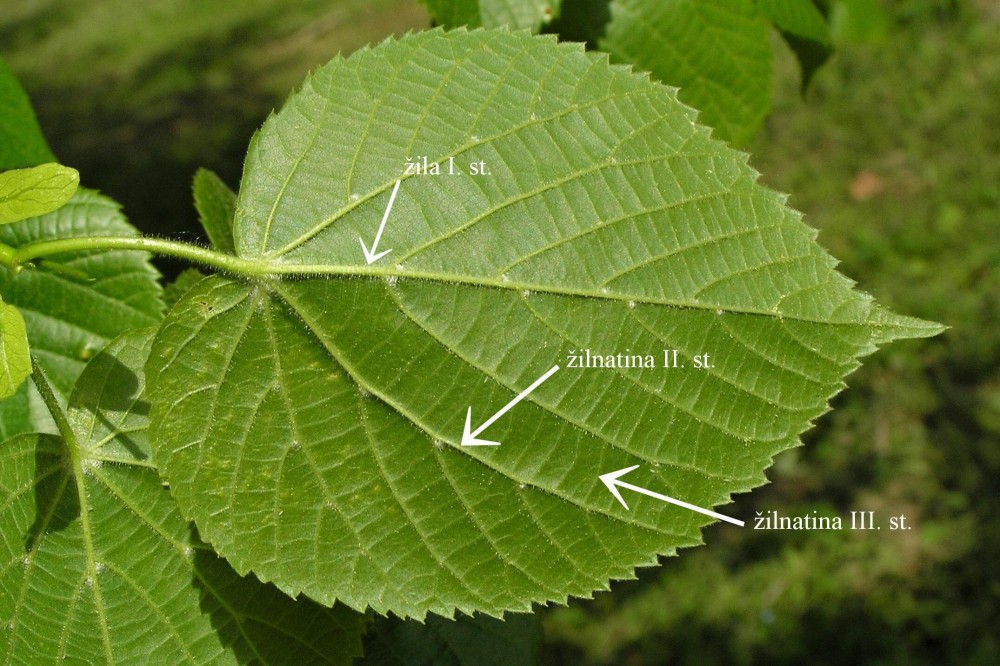 žilnatina krytosemenných (dvojklíčnolistových) – uzatvorená, tvorená sústavou žíl I. – III. stupňa (rádu), pri hrubom triedení sa na našich domácich drevinách môže vyskytnúť v dvoch variantoch: