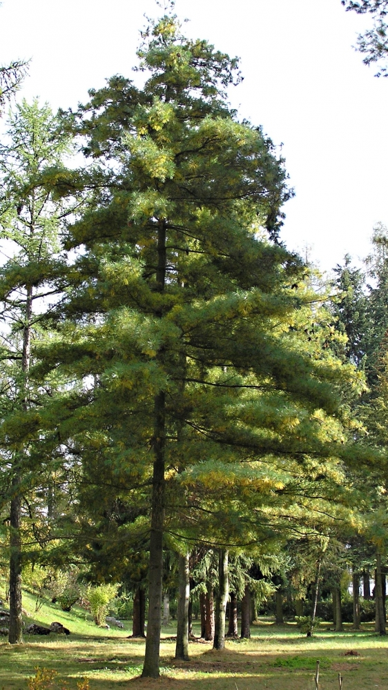 • decorative tree with habit, long needles, but also fruits - cones