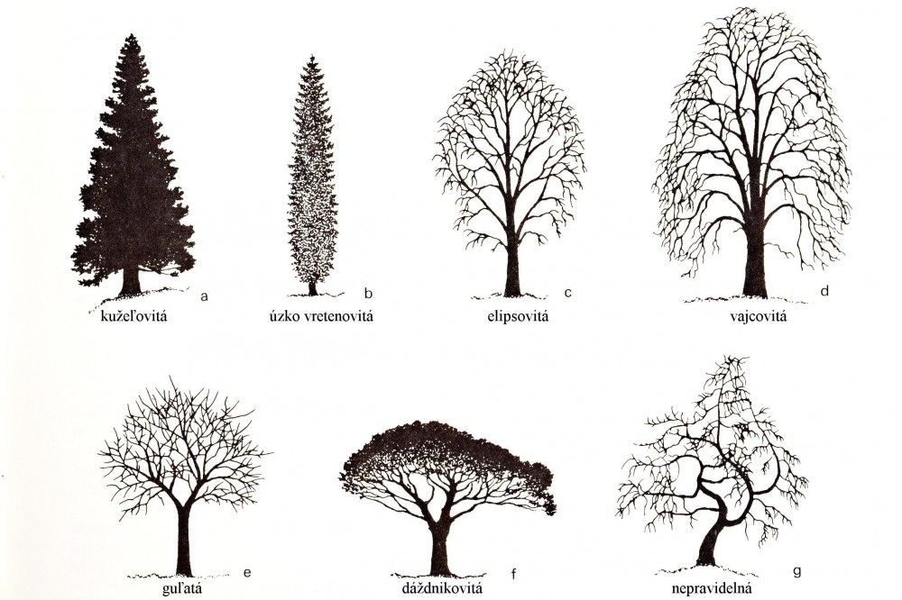 k týmto základným tvarom korún sa pridávajú ešte termíny ako široko, úzko, obráteno