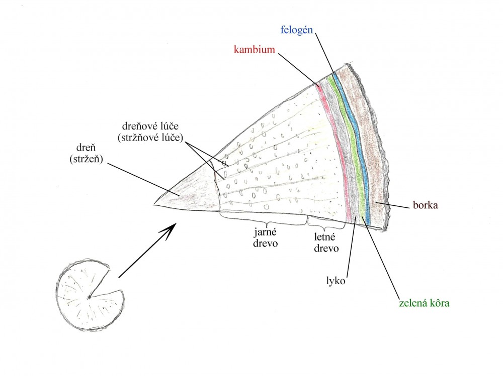 do druhého roku sa zachovajú už iba trváce pletivá (pokožka, kôra, lyková časť a časť dreva)