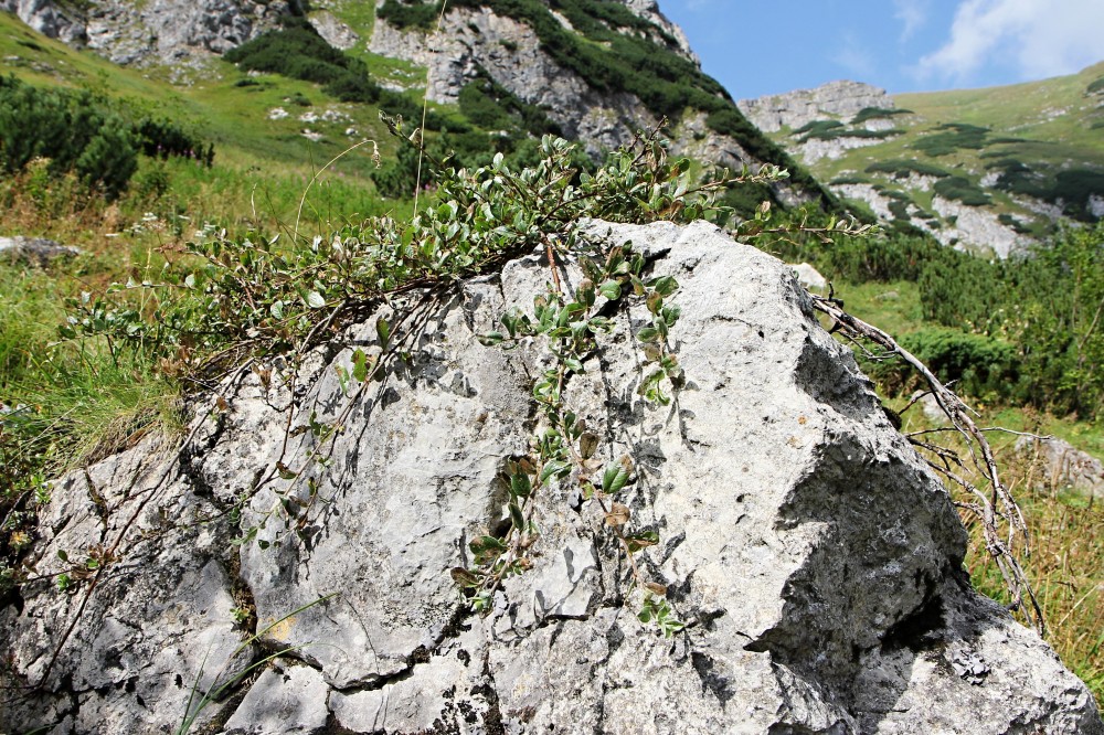 Druh: vŕba alpínska, Rod: vŕba (Salix), Čeľaď: vŕbovité (Salicaceae), Skupina: Krytosemenné dreviny
