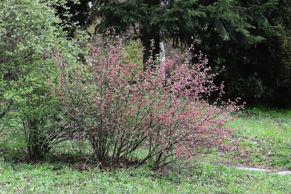 • dekoratívna drevina tmavočervenými kvetmi